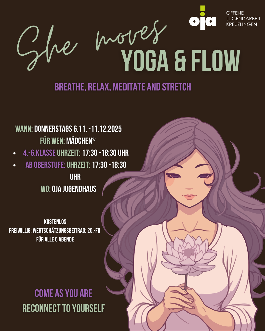 In Einer Welt voller Reize, Likes und ständigem Vergleichen auf Social Media, kann es leicht passieren, dass man den Kontakt zu sich selbst verliert. Yoga und Meditation bieten einen heilsamen Gegenpol: sie laden ein, innezuhalten, durchzuatmen und sich selbst wieder bewusst zu spüren – jenseits von Bildschirmen und äusseren Meinungen. Beim Yoga wird der Körper auf sanfte Weise gestärkt, gedehnt und entspannt. Dabei geht es nicht um Leistung oder Perfektion, sondern um Achtsamkeit, Selbstliebe und das Vertrauen in die eigene Kraft. Die Meditation hilft, Gedanken zur Ruhe kommen zu lassen. Die Konzentration zu steigern, Gefühle wahrzunehmen und einen klaren liebevollen Blick auf sich selbst zu entwickeln. Und dies mit Anderen zu teilen. Be Happy. Be Peaceful.